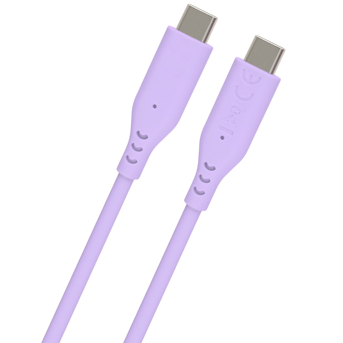 PremiumCord Silikonový kabel s konektory USB-C 60W 480Mbps fialový extra měkký 1,5m