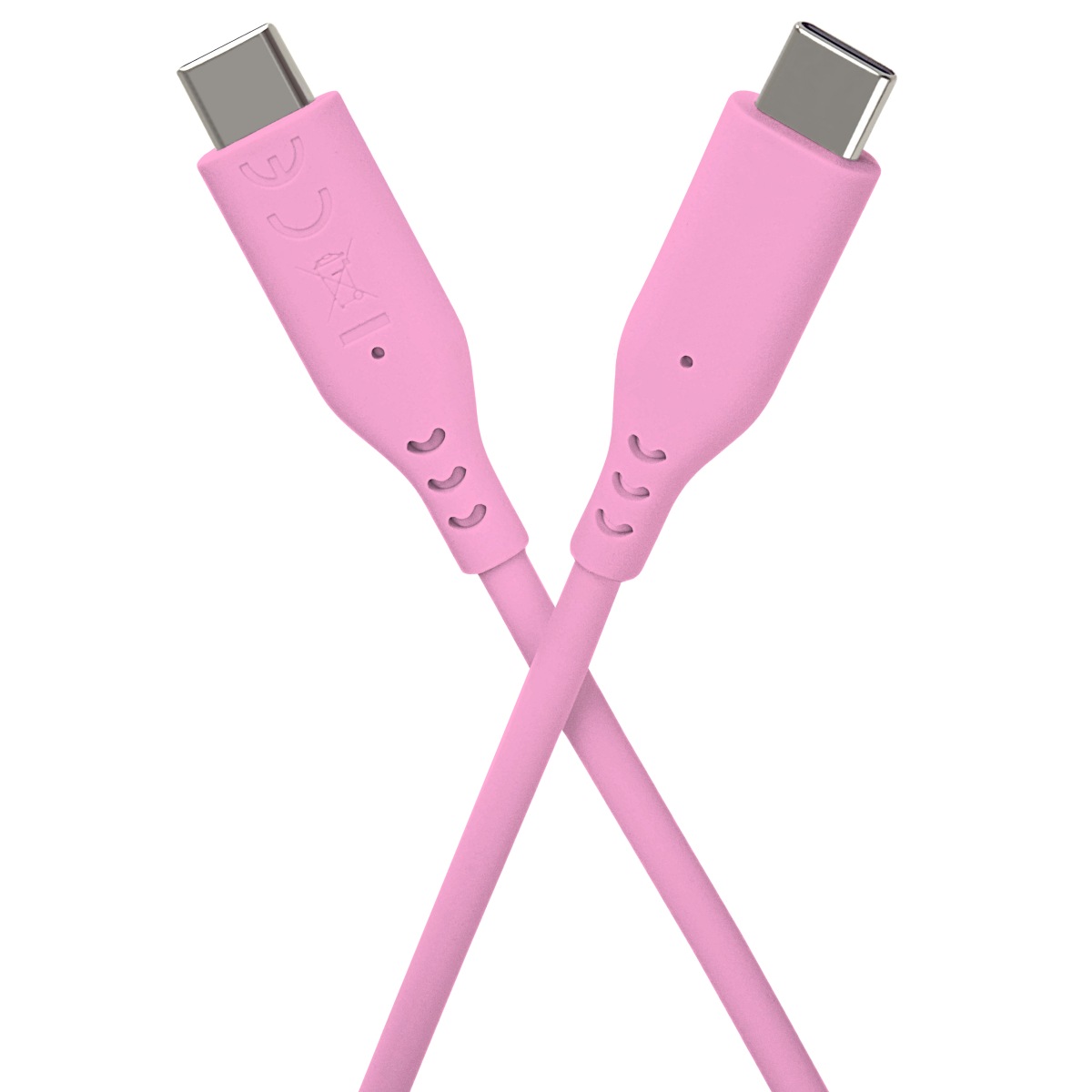 PremiumCord Silikonový kabel s konektory USB-C 60W 480Mbps růžový extra měkký 1,5m