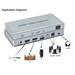 - Zařízení dokáže oddělit audio signál z HDMI vyvést na více výstupů například pro sluchátka nebo zesilovač ( stereo jack, koaxiální nebo optický digitální ).