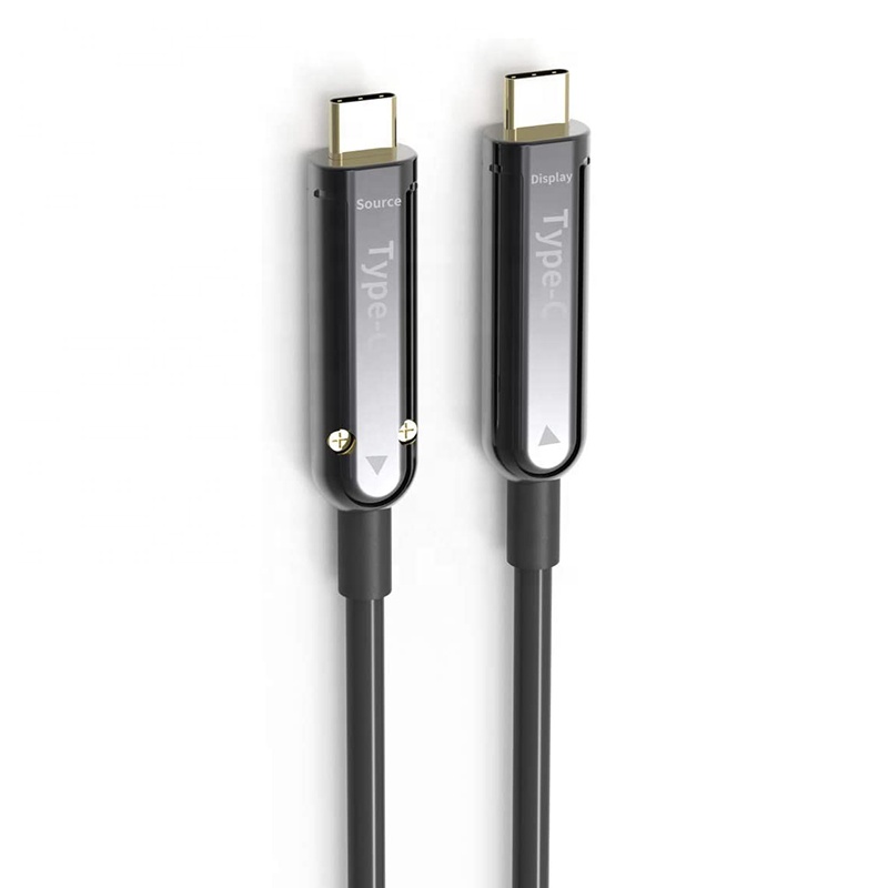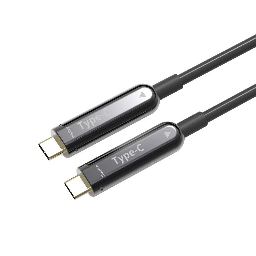 Metalické USB-C kabely nejsou schopné propojit velké vzdálenosti, zde nastupují optické kabely, kde se signál v konektoru přemění na data přenášená po optickém vlákně a vzdálenost je téměř neomezená.