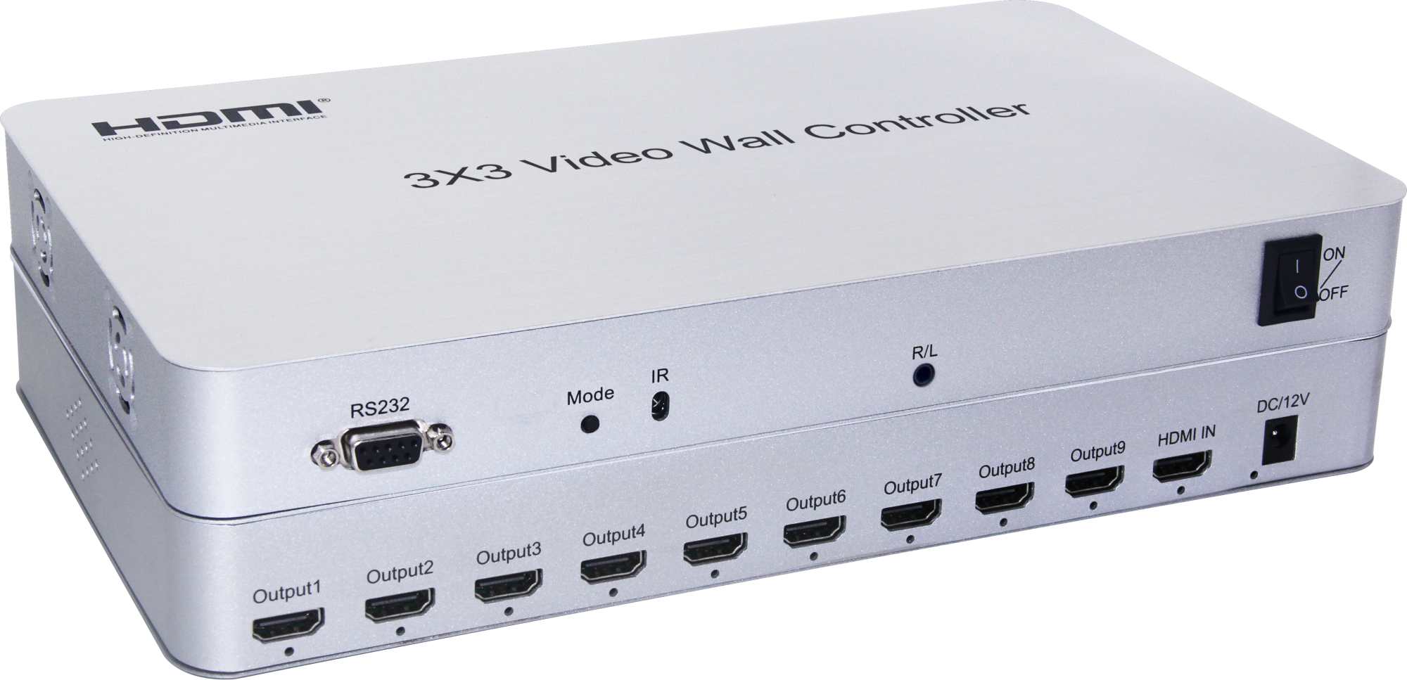 3x3 controler videostěny podporuje 1x HDMI vstup a 9 HDMI výstupů. Hlavní funkcí je rozdělení kompletního HD obrazového signálu do 9 obrazů a jejich přiřazení na 9 LCD monitorů a vytvoření jedné velké video stěny.
