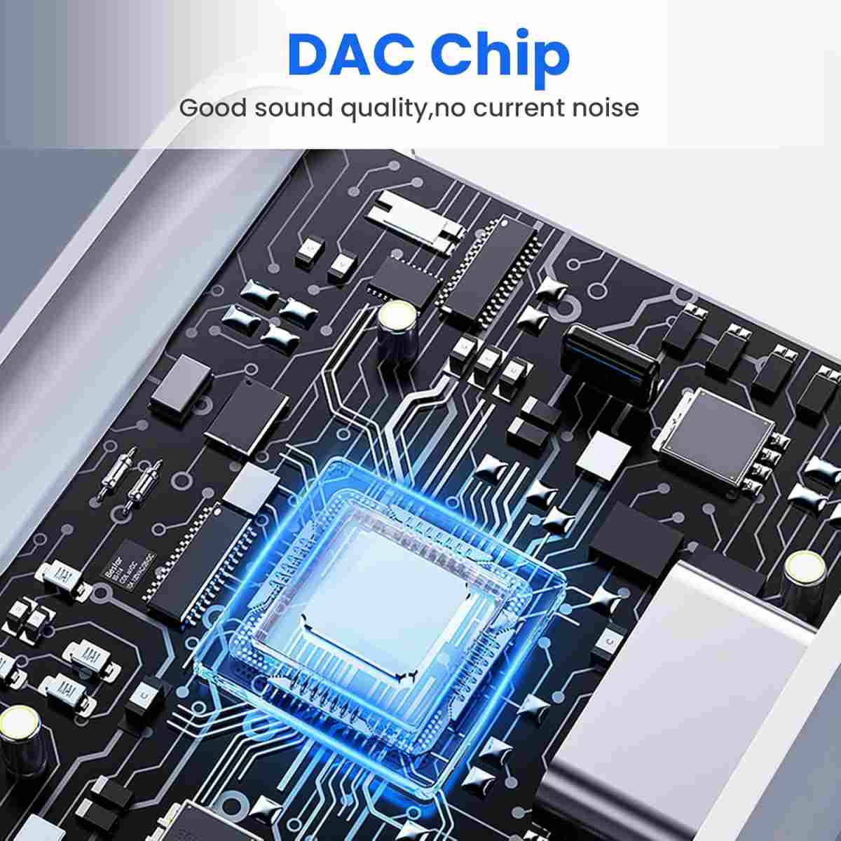 - Tento adaptér pro sluchátka s USB-C konektorem má vestavěný inteligentní dekódovací čip DAC. Vysoce kvalitní přenos zvuku, žádný šum.