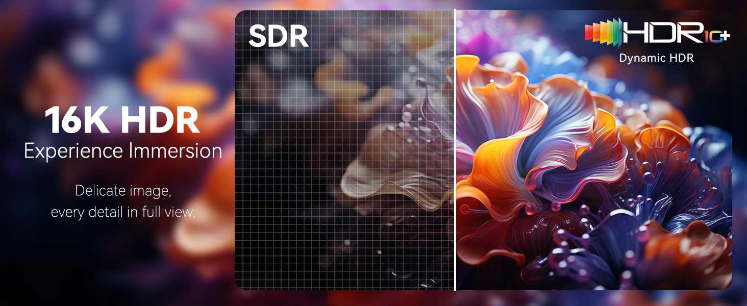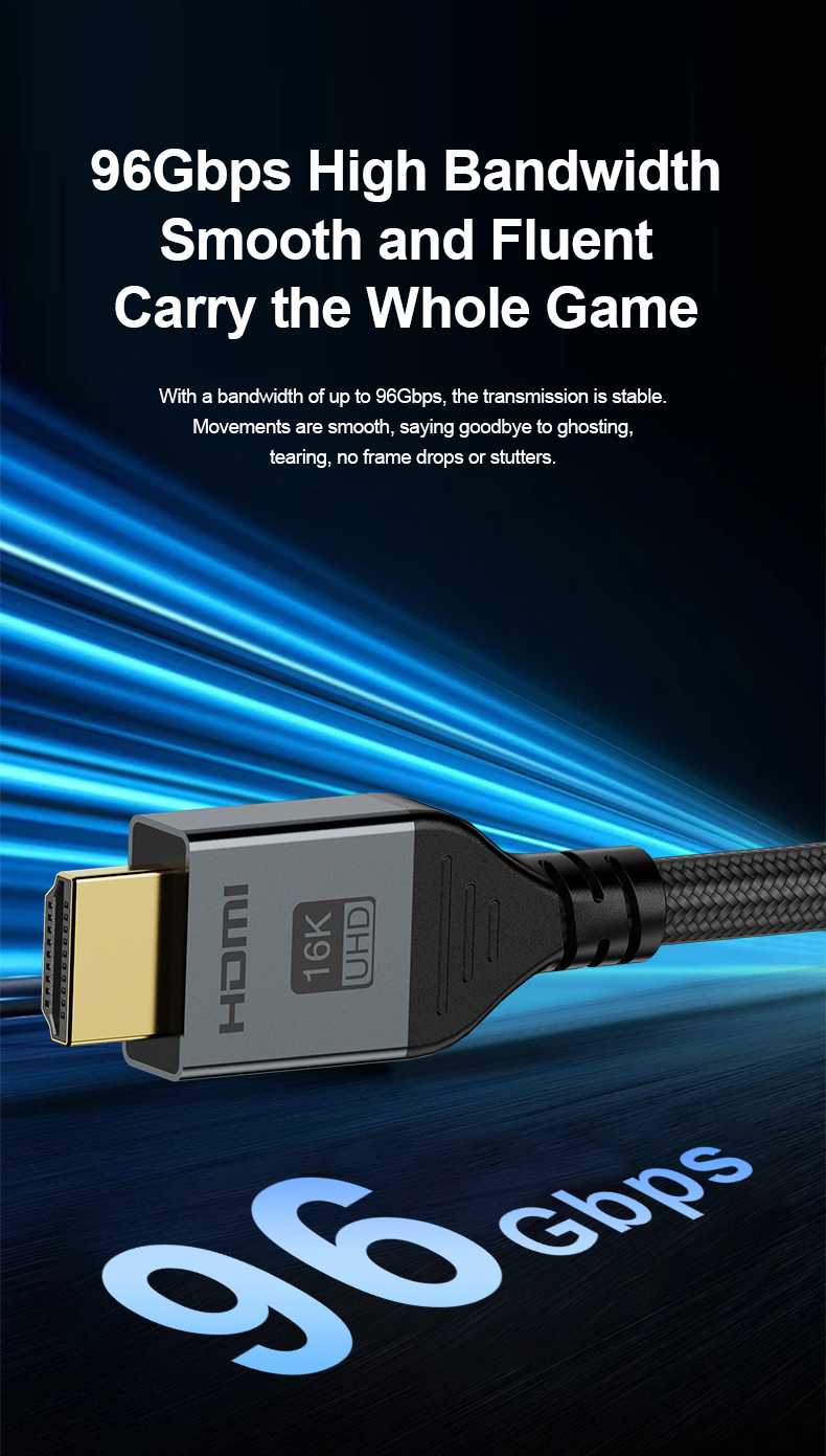 Nově vylepšený 16K HDMI kabel: Inovativní vylepšený 16K HDMI kabel s podporou vysokorychlostního přenosu 96 Gb/s umožňuje plynulé přechody mezi rozlišeními 16K při 60 Hz, 8K při 120 Hz a 4K při 480 Hz pro křišťálově čistý obraz.