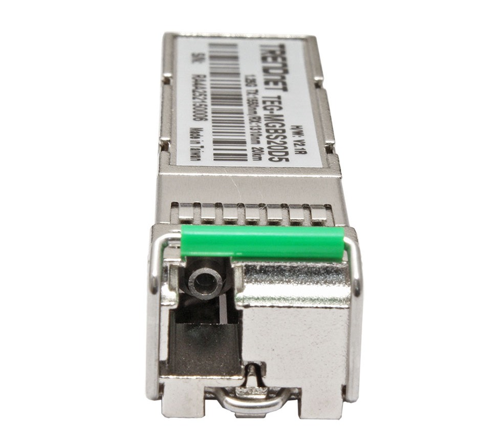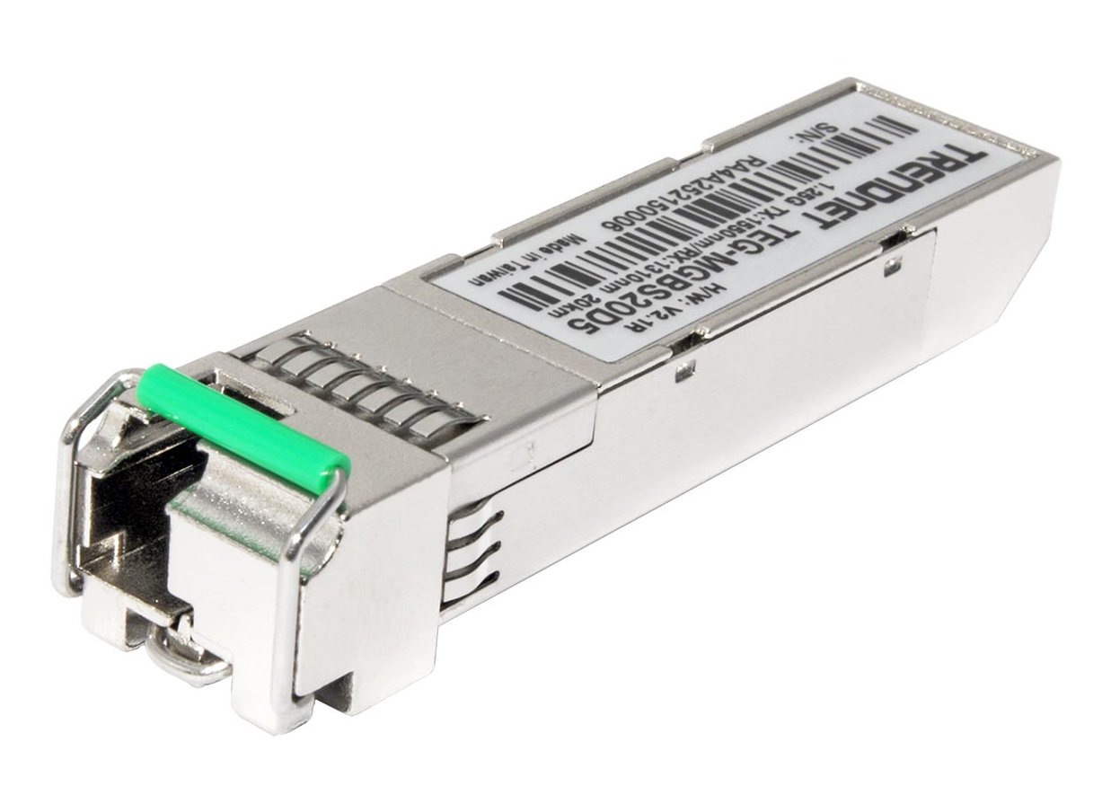 SFP (GBIC, mini GBIC) modul s konektory LC pro optickou síť 1000Base-BX20. Osazuje se jako rozšiřující modul do zařízení (přepínače, médi konvertory…) s portem SFP.