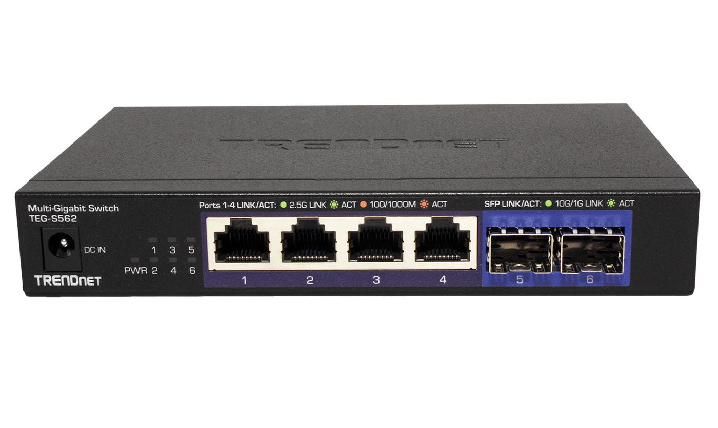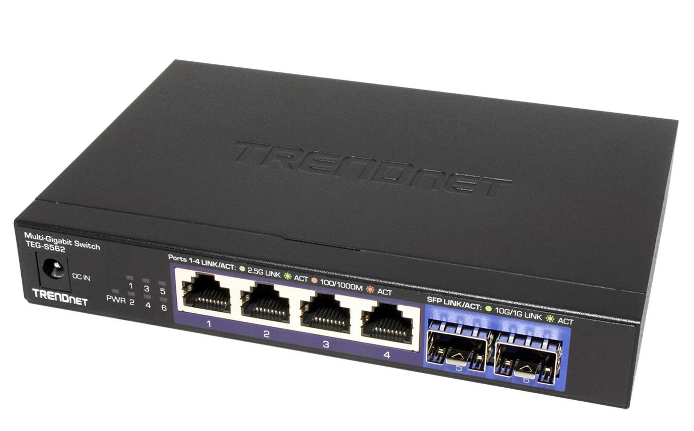 Ethernet přepínač v kovovém provedení pro zvětšení přípojných míst v síti. Je osazen celkem 4 porty RJ45 2,5Gbps a 2 porty SFP+ (10Gbps). Tichý provoz zaručuje chlazení bez ventilátorů.