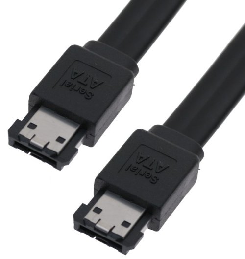 Plochý datový kabel zakončený na každém konci eSATA (female) konektorem je vhodný pro propojení externích eSATA zařízení jako jsou například pevné disky.