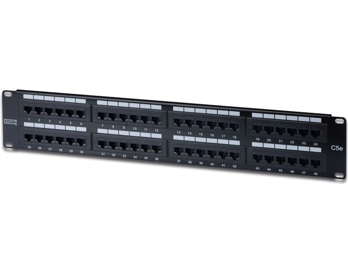 - testováno pro CLASS E, až 250 MHz - 3P certified, permanent & Channel Link certified - 1,2mm tloušťka plechu - nestíněné RJ45 samice 8P8C - do 19" racku, 2U výška - instalace kabelů LSA stripem - barevné kodování dle EIA/TIA 568B - patch panel osazený 48 x RJ45 s narážecími konektory