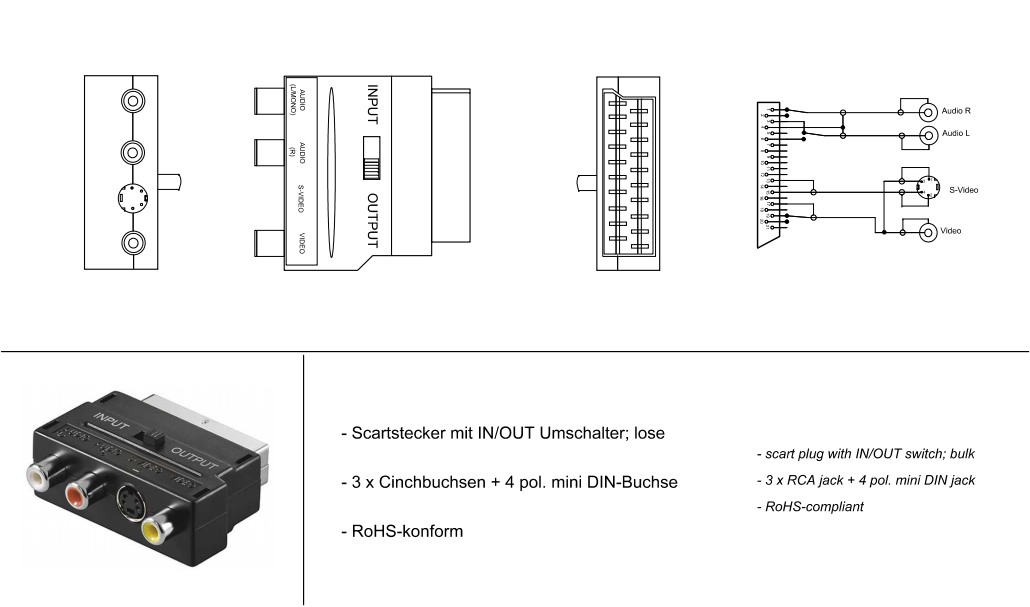 PremiumCord Adapter SCART/M-2xSCART+3xCINCH+Switch IN/OUT